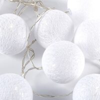Esferas blancas para guirnalda. Modelo 1. 10 unidades de 6cm. La giurnalda se arma con luces led como guía (no incluía), en cada led se coloca una esfera.