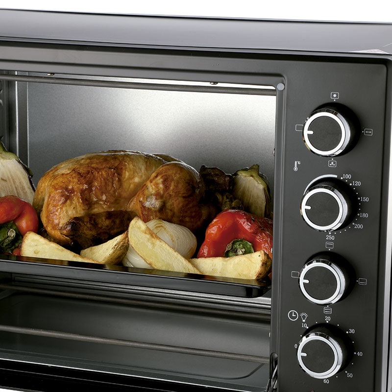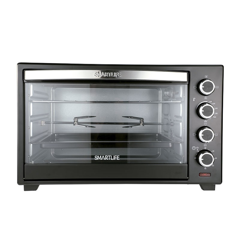 Marca Smart Life. Horno eléctrico. Capacidad 60lts. Spiedo. 6 opciones de cocción. Luz interior. Regulador de temperatura de 100 a 250°C. Temporizador hasta 60 minutos. Incluye: Bandeja de alimentos. Manipulador de bandeja. Bandeja junta migas. Accesorio para Spiedo y Manipulador Spiedo. Dimensiones: 62x41x36cm. Peso: 11kg.