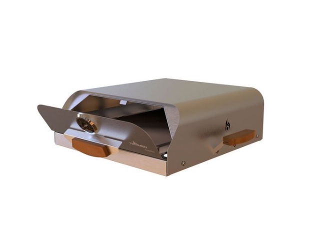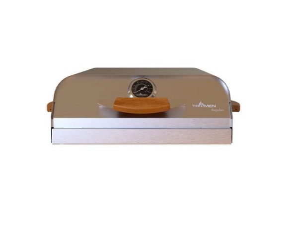 Marca Tromen. Horno portable Nápoles con manijas. Abarca 4 hornallas de cocina. Piso de ladrillos refractarios. No posee salida de vapores. Ancho: 59,6cm. Alto: 17cm. Profundidad: 52,5cm. Peso: 15kg. Capacidad intrerior: 10cm de alto, 35,4cm de ancho, 46cm de profundidad.