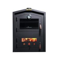 Marca Tromen. Horno TRH-L. Funcionamiento a leña. Para embutir. Accesorios: 1 bandeja de acero inoxidable, 1 parilla cromada con pirómetro. Alto: 76cm. Ancho: 56cm. Profundidad: 76cm. Peso: 92kg. Salida de humo: 4″. Capacidad interior: 47cm de ancho, 33cm de Alto, 73cm de Profundidad.