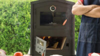 Marca Tromen. Horno TRH-L. Funcionamiento a leña. Para colocar en una mesada o con su respectiva base Tromen (no incluida), la base permite adaptar el horno a distintas situaciones y lugares, pudiendo desplazarlo fácilmente. Accesorios: bandeja de acero inoxidable, parrilla cromada, pirómetro. Alto: 78cm. Ancho: 60cm. Profundidad: 81cm. Peso total: 118kg.