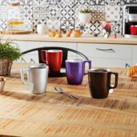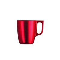 Marca Luminarc. Modelo Flashy Breakfast. Jarro mug de vidrio templado. Color rojo metalizado. Apilable. Resistente temperaturas elevadas de hasta 110°C sin riesgo. Apto microondas. Apto lavavajillas. Resistente a choques térmicos. Resistente a impactos. Diámetro: 7,6cm. Alto: 9,10cm. Capacidad: 250cc