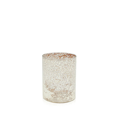 Florero de vidrio mercurizado efecto envejecido color dorado. Cilindro de línea simple. Ideal para combinar con similares de otros tamaños y ambientar con elegancia. Dimensiones: 8x10cm