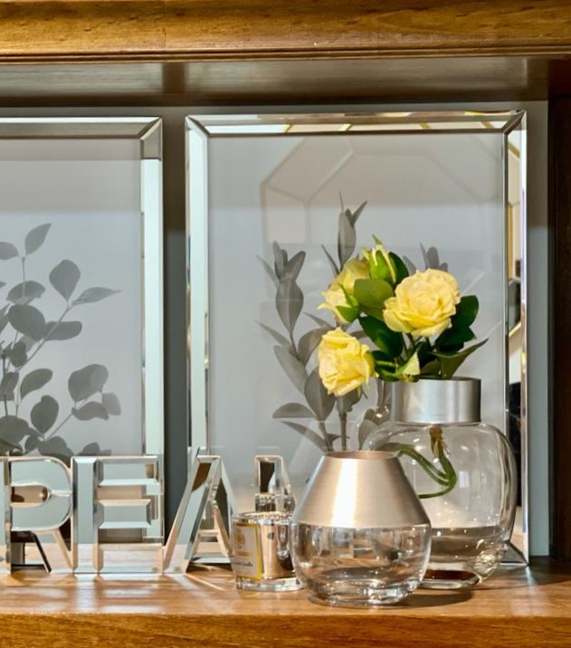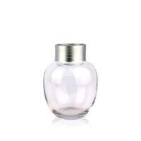 Jarrón de vidrio Elm. Detalle de acabado metálico color plateado. Diseño moderno. Ideal para combinar varios tamaños y lograr una deco con estilo. Dimensiones: 13x17cm
