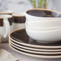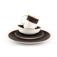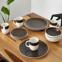Juego de vajilla 16 piezas. Línea Moka. Porcelana Premium Hiper Resistente. Apto horno. Apto microondas. Apto lavavajillas. Para 4 personas. Incluye: 4 platos playos de 27cm, 4 platos de postre de postre 18cm, 4 bowls 16cm, 4 jarros mug de 300ml