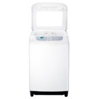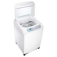Marca Samsung. Lavarropas carga superior. Modelo SAWA80F5S4UDW White. Capacidad: 8 KG. 700 RPM. AAC. Tecnología wobble, menos enredo + cuidado. 9 programas de lavado automáticos. Opción de pre-secado (air turbo). Tapa de vidrio templado. Tambor diamante de acero inoxidable. Filtro mágico lavable. Seguro para niños. Dimensiones: 61cm de ancho, 100,3cm de alto 67cm de profundidad.
