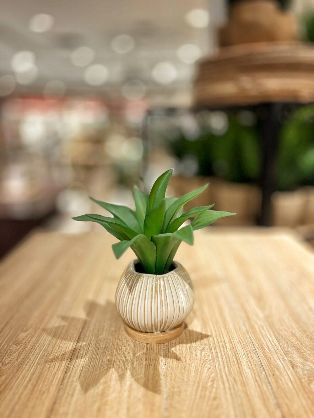 Mini planta sintética con flores en maceta. Dimensiones: 20.32 x 20.32 x 21.59CM
