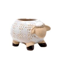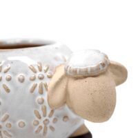 Maceta grande animales, oveja. Color blanco. Modelo 370. Cerámica esmaltada. Contiene agujero de drenaje. Medidas: 18x10cm