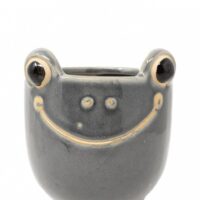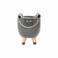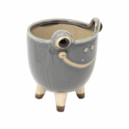 Maceta grande animales, sapo. Color gris. Modelo 384. Cerámica esmaltada. Contiene agujero de drenaje. Medidads: 10,5x14cm