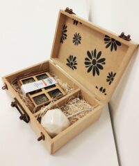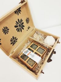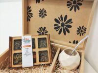 Set de mate con bombilla + hierbas aromáticas. Mate de cerámica esmaltado brillante, colores surtidos (natural, verde, rosa, negro). Presentación en caja de madera terminación rústica. Dimensiones: 30x20x10,5cm