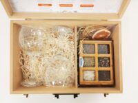 Set x6 botánicos + cítricos + 2 copones para gin. Anís estrellado, coriandro, semillas de hinojo, mix de piminetas, coco en escamas, flor de hibiscus, naranja, pomelo y limón. Presentación en maletín de madera con terminación rústica. Dimensiones: 36x24x12cm