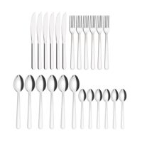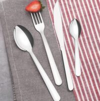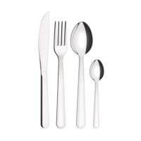 Marca Tramontina. Línea Malibu. Juego de cubiertos 24 piezas. Totalmente hecho de acero inoxidable que ofrece durabilidad y resistencia, además de dejar tu mesa mucho más elegante y llena de estilo. Son muy fáciles de limpiar, ya que se pueden llevar diariamente al lavavajillas. Incluye: 6 cuchillos para asado 4”, 6 tenedores de mesa, 6 cucharas de mesa, 6 cucharas de té.