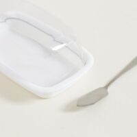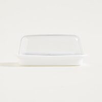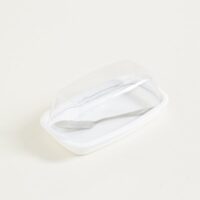 Mantequera base de plástico blanco y tapa de acrílico. Largo: 17cm