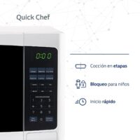 Marca BGH. Microondas digital. Modelo B120DB9. 20 litros de capacidad. Descongelá, calentá y cociná en forma rápida y práctica. Control Digital. Seleccioná el tipo de comida, configurá el tiempo y la función deseada para cocinar automáticamente. Cocción en etapas, hasta 10 niveles. En simples pasos podés programar el timming para cocinar con potencias diferentes. Descongelamiento automático. Cocción automática. Cociná tu plato preferido con solo seleccionar el tipo y el peso del alimento. Potencia 700W. Dimensiones (Al x An x Prof): 25,8x44x35cm. Peso: 11,1kg