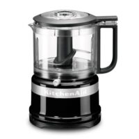 Marca KitchenAid. Mini procesadora. Permite hacer puré de frutas y verduras cocidas, ideal para preparar comida para bebés, o para utilizar como base de sopas o salsas. Posibilita hacer pan rallado y picar carne cruda. El recipiente es libre de BPA y es apto para lavavajillas. Cuchilla de bloqueo, mango y boquilla para servir fácilmente. La hoja de acero inoxidable de diseño único corta con precisión y se bloquea en su lugar para verter convenientemente. Dos velocidades y operación de pulso: Picar y puré. Proporciona un control preciso para producir resultados gruesos o finos. Volumen aproximado del cuenco: 830ml (3,5 tazas). Dimensiones: 23×12×17cm. Peso: 1,3kg. Potencia: 300W.
