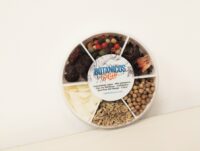 Mix de botánicos para gin. Arándanos rojos, mix de pimientas, flor de hibiscus, coriandro, semillas de hinojo, coco en escamas. Diámetro: 8,2cm. Alto: 2cm