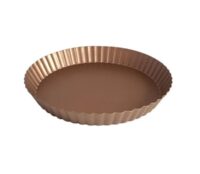 Molde para tarta con dos capas de antiadherente. Color cobre. Apto horno eléctrico y a gas. Apto lavavajillas. Diámetro: 27cm. Alto: 3,5cm