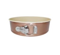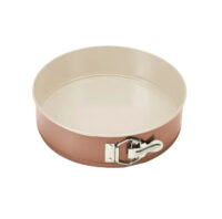 Molde tortera desmontable de acero al carbono color cobre con dos capas de antiadherente cerámico. Apto horno eléctrico y a gas. Apto lavavajillas. Ancho/diámetro: 24cm. Alto: 6,5cm.