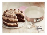 Molde tortera desmontable de acero al carbono color cobre con dos capas de antiadherente cerámico. Apto horno eléctrico y a gas. Apto lavavajillas. Ancho/diámetro: 26cm. Alto: 6,7cm.