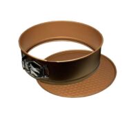 Molde para torta con dos capas de antiadherente. Desmontable. Color cobre. Apto horno eléctrico y a gas. Apto lavavajillas. Diámetro: 24cm. Alto: 6,5cm