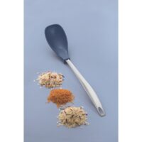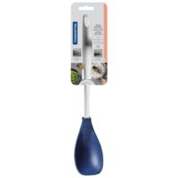 Marca Tramontina. Línea Movin. Cuchara para servir de nylon color azul. Mango de acero inoxidable. No daña ninguna superficie, tanto antiadherente como cerámica. Resiste temperaturas de hasta 180 °C. Posee escala de medidas que ayudan al momento de preparar y servir. No retiene olores ni mancha. Apto lavavajilla. Largo: 35,2cm. Largo del mango: 23,2cm.