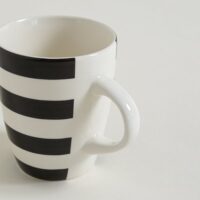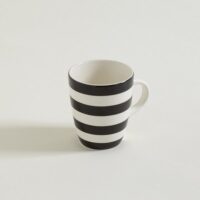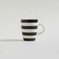 Mug de cerámica a rayas blanco-negro. Esmaltado brillante. Capacidad: 360ml