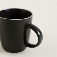 Mug de cerámica. Esmaltado satinado color negro. Borde natural. Capacidad: 384ml