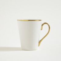 Mug de cerámica con detalle dorado en borde y asa. Capacidad: 360ml