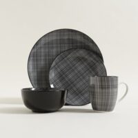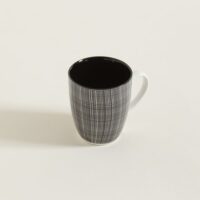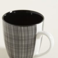 Mug de cerámica. Combinado. Exterior color blanco con diseño de trama negra. Interior negro. Capacidad: 355ml