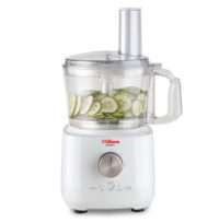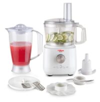 Marca Liliana. Procesadora + Licuadora Experty 6 en 1. Modelo AM730. Pica, ralla, rebana, amasa, bate punto nieve y licúa. 2 Velocidades + pulsador. Disco portacuchillas intercambiables de acero inoxidable para rallar y rebanar. Cuchilla picadora. Amasador. Bate punto nieve. Vaso Procesador de 1,2 Lts. Jarra Licuadora de 2 Lts. Base con patas antideslizantes. Enrollacable. Potencia: 700 watts.
