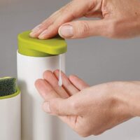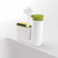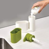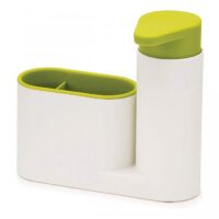 Organizador con dispenser de jabón y compartimiento desmontable. Fácil de lavar. Largo: 18cm. Ancho: 6cm. Alto: 16,5cm.