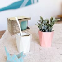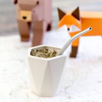Mate / Maceta de cerámica Origami. Incluye caja contenedora y bombilla. Largo y Ancho: 7,5cm. Alto: 11cm. Producción 100% artesanal. En muy pocos casos este producto puede ofrecer variaciones en su acabado final, ya sean detalles de pintura como pequeños craquelados luego de un uso prolongado. Ninguno de estos puntos afecta el buen funcionamiento del producto, simplemente son detalles estéticos.