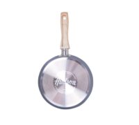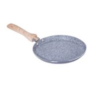 Panquequera línea granito. Aluminio de 2,1mm de espesor. Triple capa de antiadherente cerámico. Difusor de calor espiral. Tecnología Soft Touch en el mango con diseño símil madera. Gracias a su material, los alimentos se deslizan fácilmente y no se pegan, reduciendo el consumo de aceite y dando como resultado comidas más sanas. Fácil de lavar debido a su antiadherencia. Apto para cocinas a gas, vitrocerámicas y eléctricas. Diámetro: 22cm