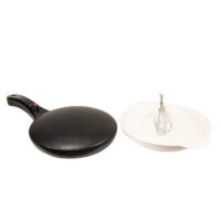 Marca Winco. Panquequera eléctrica. 800W de potencia. Superficie anti-adherente. Mango ergonómico. Luz indicador de temperatura. Incluye batidor y bowl. Base de 18.5 cm. de diámetro. Dimensiones: 20cm x 30cm x 5cm. Peso: 0.5kg.