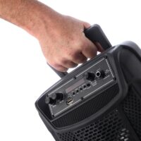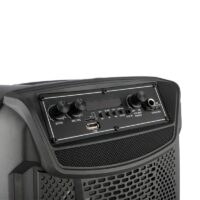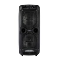Marca Smart Life. Equipo de audio portátil. 15 Watts RMS. 2 vías 8”. Bluetooth. Función TWS / USB / TF / FM / AUX / Mic. Luces Led dinámicas. Batería integrada 3.7V 3600mAh. Eco integral para Karaoke. Micrófono alámbrico. Incluye USB. para carga. Dimensiones: 23,6cm de ancho, 57,1cm de alto, 20,2cm de profundidad. Peso 3.3kg