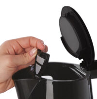 Marca Liliana. Pava eléctrica Tempomate. Modelo AP175. Selector de temperatura regulable: para preparar mate, té, y otras infusiones. Capacidad 1,7 litros. Corte automático al hervir. Doble visor del nivel del agua. Luz indicadora de funcionamiento. Base antideslizante, giratoria 360º. Práctico sistema de apertura de tapa con traba de seguridad. Filtro de partículas extraíble y lavable. Enrollacable. Color negro. Potencia: 2000 watts.