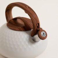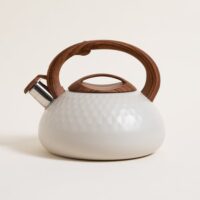 Pava silbadora color crema. Original cuerpo texturado. Innovador mango siliconado y cómodo agarre. Producto apto para cocina a inducción y convencional. Capacidad: 2,5L