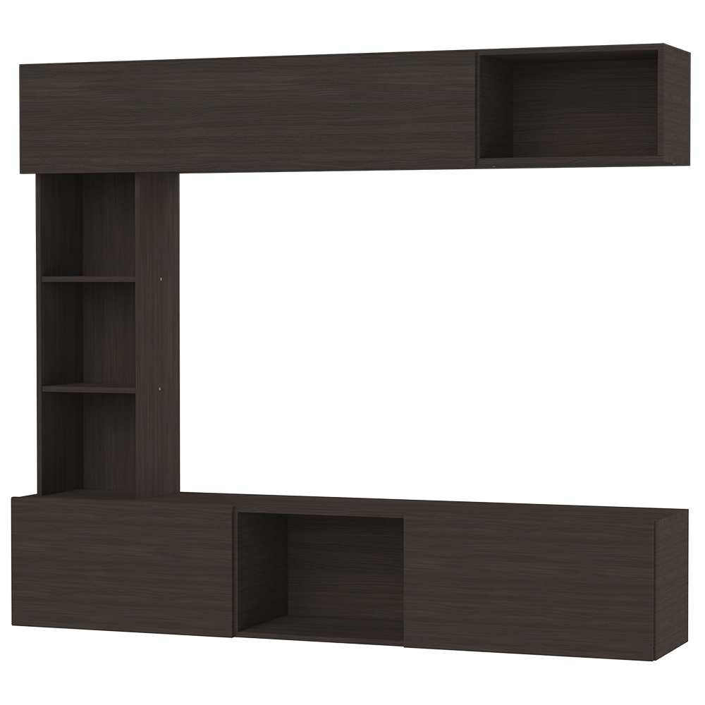 Dos cajones. Una baulera. Estantes. Totalmente revestido. Medidas 1820 x 1545 x 373 mm