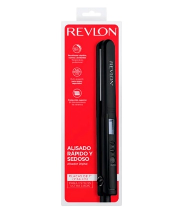 Marca Revlon. Planchita para pelo. Modelo RVST2082LA2. Placas de cerámica de 2.54cm para un deslizamiento suave y fácil. Control de temperatura digital. Auto apagado, mayor seguridad. Botón de bloqueo de placas: Para guardar fácilmente. Cable giratorio libre de enredos. Voltaje: 120-240 V – 50-60Hz. Potencia: 42W
