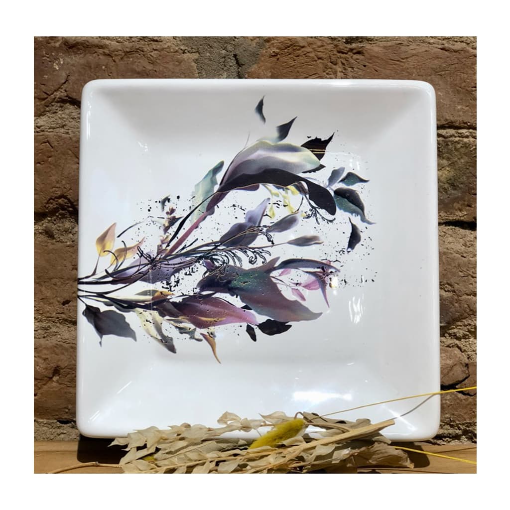 Plato cuadrado de cerámica. Medidas: 23x23cm