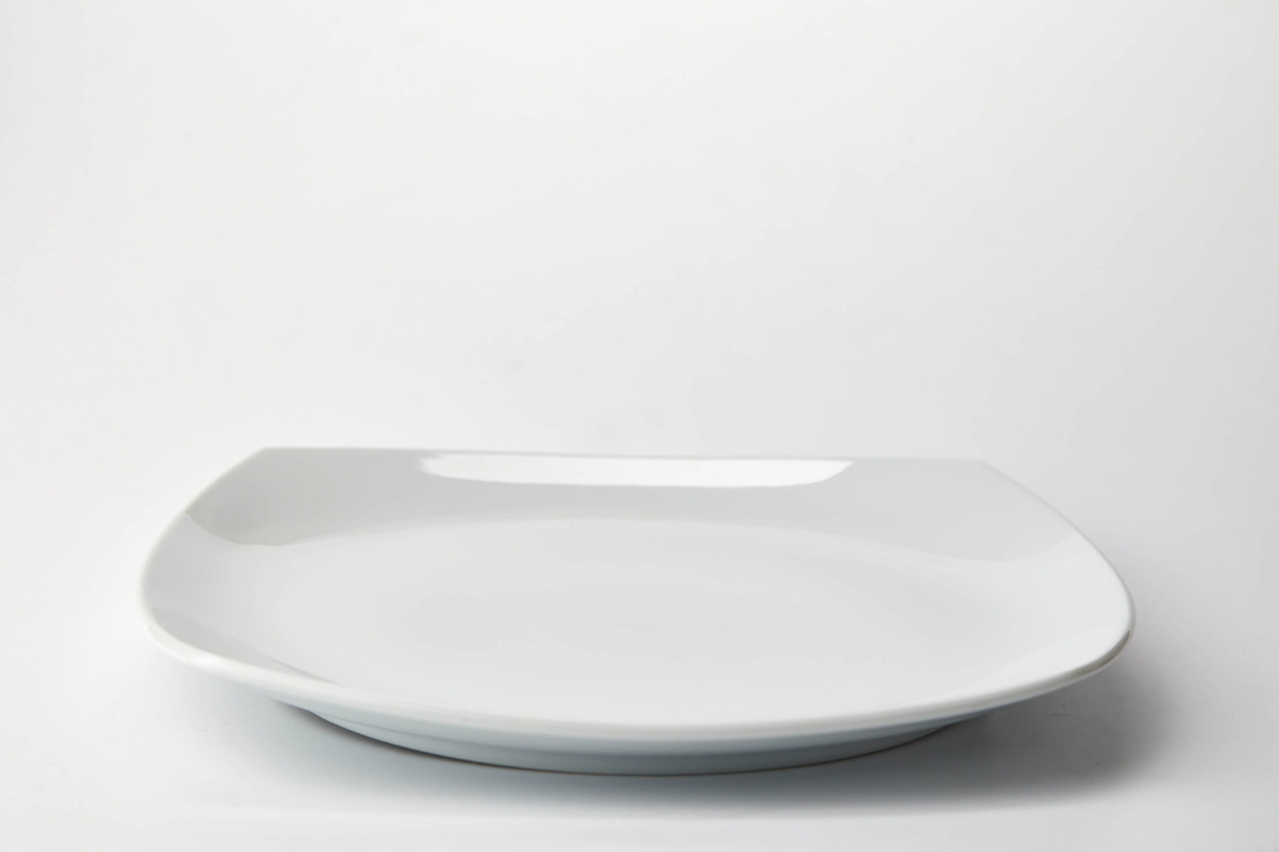 Marca Tsuji. Plato playo de porcelana blanca. Línea moderna, limpia y elegante que combina una figura cuadrada y curva a la vez. Apto lavavajillas, microondas, horno y freezer. Diámetro: 27,7cm. Alto: 3,3cm. Peso: 935gr