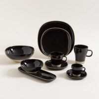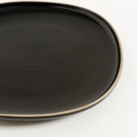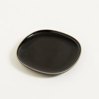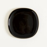 Plato de cerámica cuadrado con bordes redondeados. Esmaltado brillante color negro. Borde rústico color natural. Largo y Ancho: 26cm
