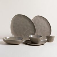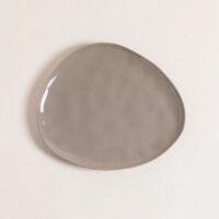 Vajilla realizada en cerámica esmaltada brillante color visón. Línea Umay. Diseño de plato irregular y novedoso. Ideal para combinar con cubiertos de color dorados. Va muy bien para un estilo de mesa informal. Medidas: 30cm de largo x 26cm de ancho. Apto lavavajillas. Apto microondas. No apto horno.