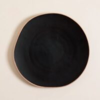 Plato playo Monastir color negro. Cerámica de alta durabilidad. Diseño de acabado rústico y bordes irregulares en color natural. Esta vajilla se adapta para ser combinada con otras líneas gracias a su aspecto artesanal. Apto para lavavajillas y microondas. No es apto para horno. Línea de diseño: Monastir. Medida: 27cm de diámetro. Este producto puede presentar detalles típicos del proceso de fabricación, los cuales no son considerados fallas.