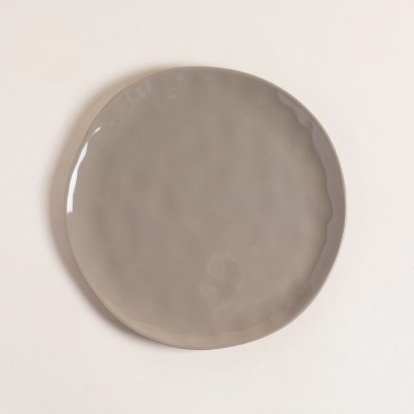 Vajilla realizada en cerámica esmaltada brillante color visón. Línea Senay. Diseño de plato irregular y novedoso. Ideal para combinar con cubiertos de color dorados. Va muy bien para un estilo de mesa informal. Medidas: 26cm de diámetro. Apto lavavajillas. Apto microondas. No apto horno.