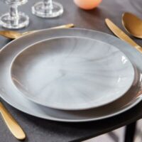 Marca Luminarc. Modelo Diwali. Plato de postre de vidrio templado símil marmol. Color gris. Resistente temperaturas elevadas de hasta 110°C sin riesgo. Apilable. Apto microondas. Apto lavavajillas. Resistente a choques térmicos. Resistente a impactos. Diámetro: 19cm. Alto: 1,5cm