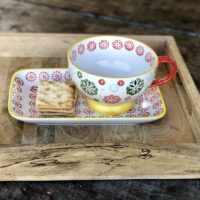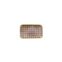 Plato de masas/bandeja estampada rectangular chica. Cerámica esmaltada en colores Amarillo-Rojo. Apto lavavajillas y microondas. Medidas: 21,5x14x3cm