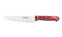 Marca Tramontina. Línea Pollywood. Juego de cuchillos 4 piezas. Cuchillo Chef 8″,Cuchillo Cocina 6″,Cuchillo Legumbres 3″,Cuchillo Pan 7″. Láminas de acero inoxidable con un formato y espesor que garantizan la mejor resistencia, al tiempo que evitan las deformaciones. El tratamiento térmico que reciben le proporciona durabilidad al filo, y el mango de madera tratado con polywood, fijado con remaches de aluminio, es cómodo y seguro.