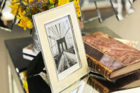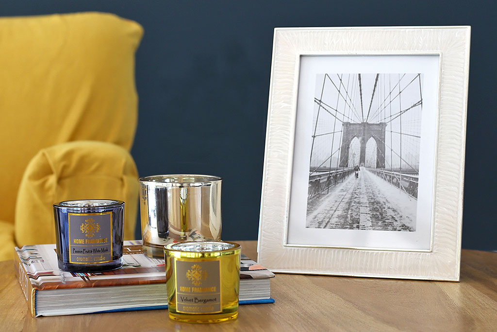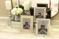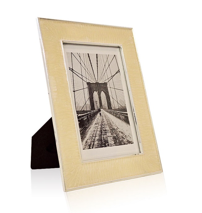 Portarretrato metálico con terminación esmalte marmolado. Diseño delicado y neutro. Tamaño de la foto: 13x18cm