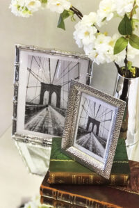 Portarretrato metálico con marco efecto martillado formato profundo. Ideal para una estética descontracturada. Trabajado completamente a mano. Tamaño de la foto: 13x18cm